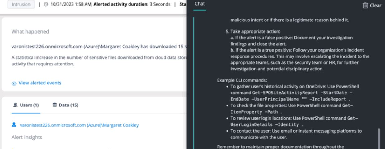 SOC-Analysen: Die Erkenntnisse und Maßnahmen von Athena AI helfen dem Sicherheitsteam, der Ursache eines Alarms auf den Grund zu gehen, Vorfälle zu beheben und die Umgebung in Rekordzeit proaktiv zu sichern. Athena AI kombiniert Large Language Models (LLMs) mit dem von Varonis erstellten tiefen Kontext zu Daten, Identitäten, Geräten und früheren Alarmen des Unternehmens, um sofort maßgeschneiderte Playbooks für die Reaktion auf Alarme zu erstellen.