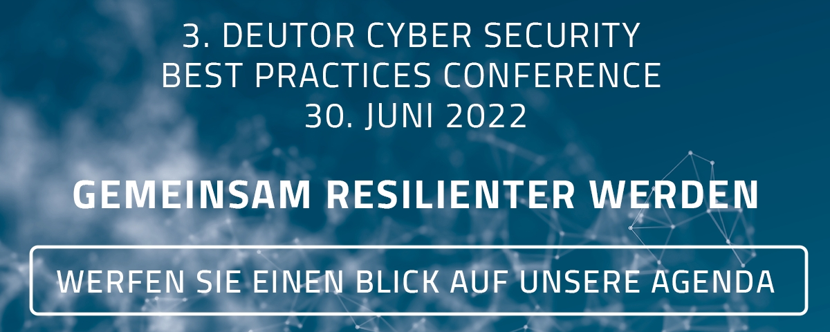 Mit der 3. Deutor Cyber Security Best Practice Conference 2022 wollen wir das Wissen aus Behörden und Industrie zusammenführen und Ihnen die Möglichkeit bieten, Teil der Diskussion in der Cyber-Familie zu sein.