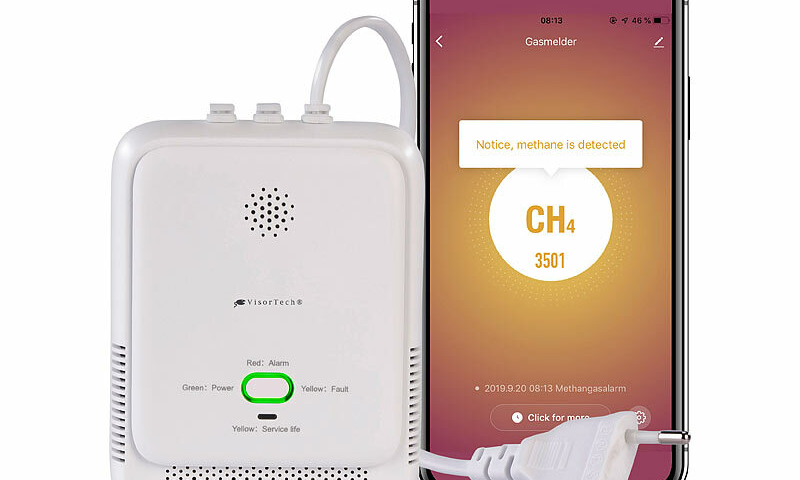 Echtzeiterfassung gefährlicher Gaskonzentrationen: Der WLAN-Gasmelder von VisorTech erkennt austretendes Erdgas, Methan, Propan, Butan und LPG. Die intelligente Sensorik erfasst gefährliche Gaskonzentrationen in Echtzeit und löst umgehend Alarm aus.