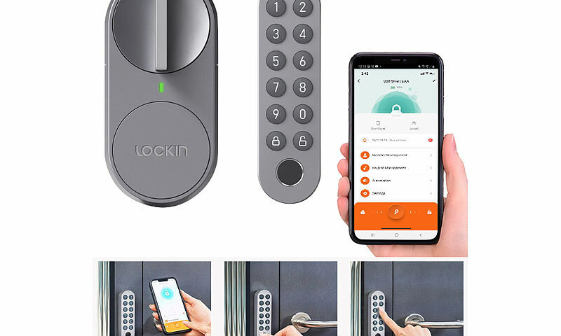 – Auto-Lock-Funktion: sperrt bei angebrachten Magnetsensor automatisch, sobald die Tür ins Schloss