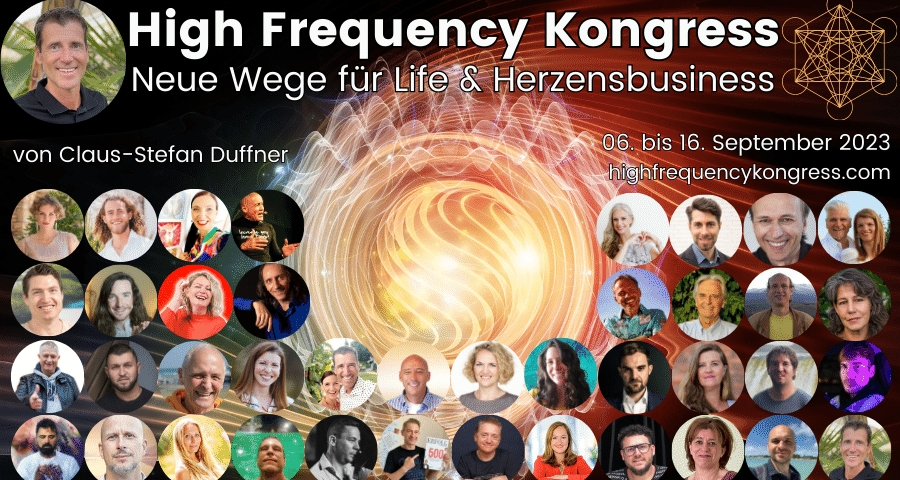 In den letzten Jahren hat sich so vieles verändert und viele Menschen haben die Leichtigkeit und Freude verloren. Claus-Stefan hat sich die Frage gestellt, wie können wir diese Entwicklung umdrehen? Die Antwort darauf liefert sein brandneuer High Frequency Kongress. Es ist ihm gelungen 40 hochkarätige Speaker für diesen Onlinekongress zu gewinnen. So sind beispielsweise der SPIEGEL-Bestsellerautor Pierre Franckh, Dr. Roy Martina von Quantum Multiverse und der aus dem Fernsehen bekannte Streetfotograf Nr. 1 Weniamin Schmidt mit dabei.