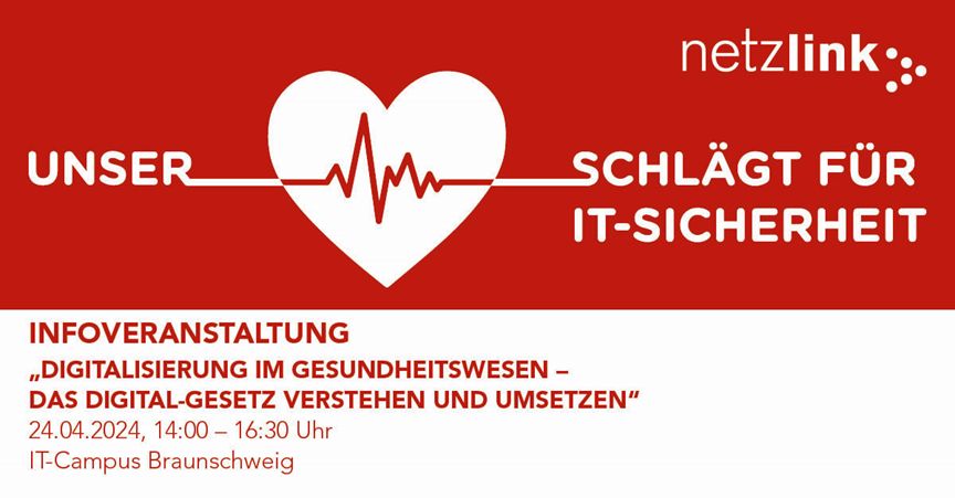 Um diesen Anforderungen zu begegnen, lädt die Netzlink Informationstechnik GmbH am Mittwoch, den 24.04.24, von 14:00 – 16:30 Uhr Akteure im Gesundheitswesen zu einer kostenfreien Informationsveranstaltung „Digitalisierung im Gesundheitswesen – Das Digital-Gesetz verstehen und umsetzen“ auf den IT-Campus Braunschweig ein.