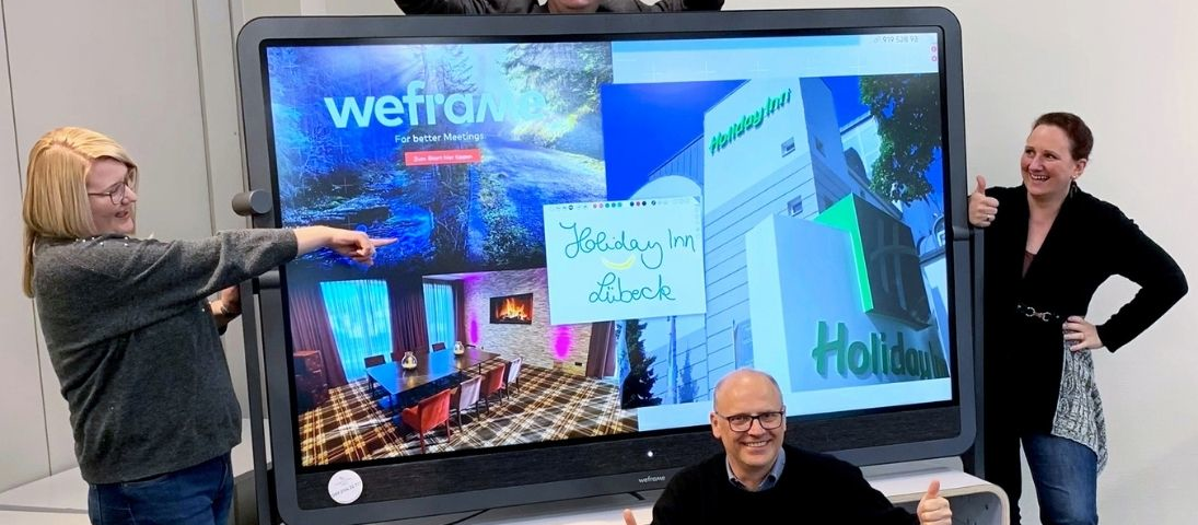 Eine vor kurzem im Auftrag des VDVO (Verband der Veranstaltungsorganisatoren) erstellte Mitgliederumfrage hat ergeben, dass auch nach der Pandemie die Veranstaltungsbranche an dem Trend hybrider Formate festhalten wird. Demnach gaben 88 Prozent der Befragten an, auch in Zukunft verstärkt auf Hybridformate setzen zu wollen. „Lange haben wir uns mit diesem Thema auseinandergesetzt und die unterschiedlichen Formate analysiert“, erklärt Hoteldirektor Christian Schmidt. „Doch vollkommen überzeugt hat uns erst Weframe One, so dass wir gleich zwei neue Sessionboards einsetzen werden. Damit sind wir in Lübeck als Erste am Start und übernehmen für Schleswig-Holstein wohl auch die Vorreiterrolle.“ Denn das neue Angebot ermöglicht vor allem die interaktive, standortunabhängige Einbindung verschiedenster Teilnehmer, die von überall auf der Welt synchron auf den Weframe-Geräten zusammenarbeiten können – in der Qualität von Präsenzmeetings.