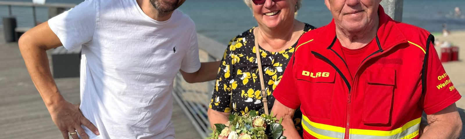 8. September 2025 – „Seit 43 Jahren ist Rainer Lehmkuhl bei der Deutschen Lebens-Rettung-Gesellschaft (DLRG) am Weissenhäuser Strand ehrenamtlich aktiv – jetzt feiern wir gemeinsam sein 60. Dienstjubiläum. Ganz herzlichen Glückwunsch zu dieser tollen Leistung! Sicherheit am Strand ist für uns als Ferien- und Freizeitpark Weissenhäuser Strand sehr wichtig. Wir haben sehr viele Familien als Gäste – gerade bei kleinen Kindern ist Sicherheit der Gäste erste Priorität“, erklärt David Depenau, Sprecher der Geschäftsführung des Ferien- und Freizeitparks Weissenhäuser Strand.