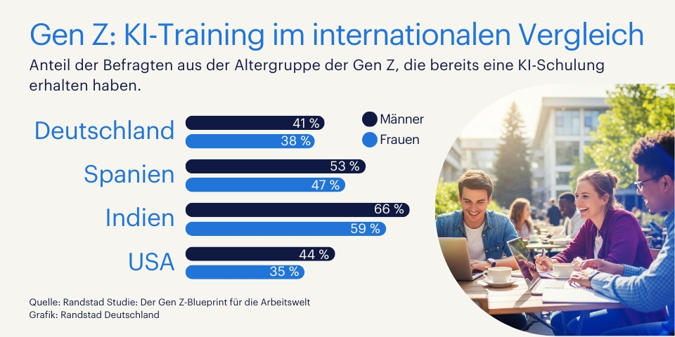 – Nur 38 % der weiblichen Gen-Z-Beschäftigten in Deutschland haben im letzten Jahr eine KI-Weiterbildung erhalten, und 41 % der Männer. Männer und Frauen in Deutschland liegen somit fast gleichauf.