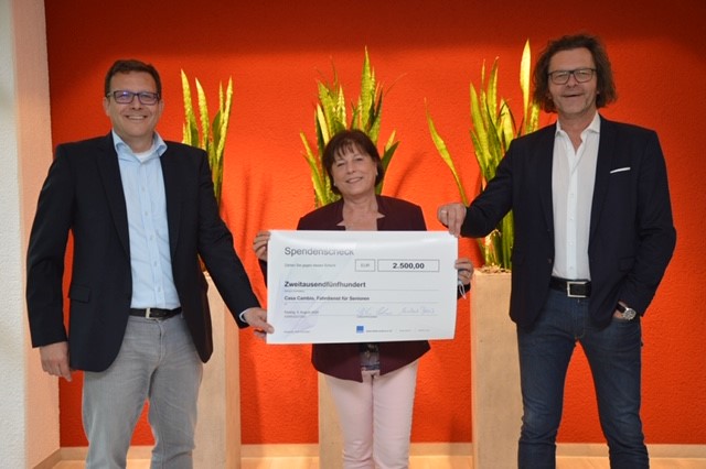 „Bei unserer jetzigen Spende haben wir an eine Zielgruppe gedacht, die in unserer Gesellschaft oft vergessen wird: die Senioren!“, sagt Michael Bruns. „Diese haben im Alter oft Schwierigkeiten, mobil zu bleiben und deshalb spenden wir ganz explizit für den Senioren-Fahrdienst von Casa Cambio!“