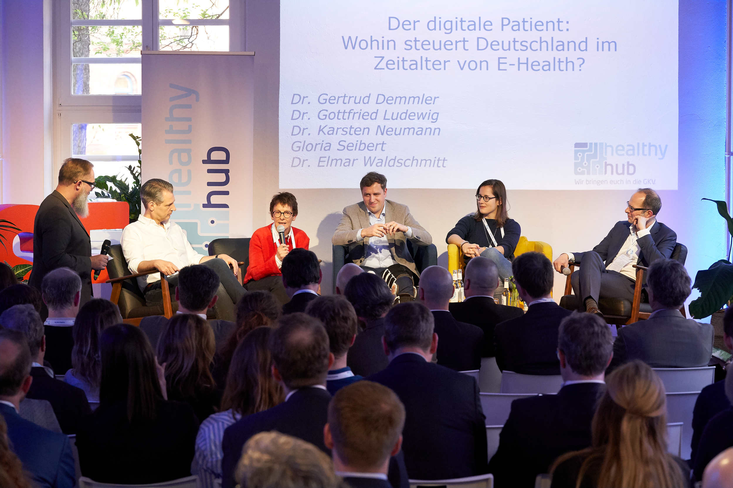 Fünf Start-ups hatten sich beim ersten Wettbewerb unter 80 Teilnehmern durchsetzen können und für ihre Produkte eine von fünf Healthy-Hub-Krankenkassen (BIG direkt gesund, Hanseatische Krankenkasse, IKK Südwest, mhplus, Siemens Betriebskrankenkasse) als Partner gewinnen können. Diese fünf Paarungen stellten sich auf der Bühne in lockeren Plauderton vor und es war zu spüren, Start-ups und Krankenkassen hatten auf Augenhöhe zusammengearbeitet. Der Healthy Hub hatte sein Versprechen „Wir bringen Euch in die GKV!“ eingelöst.