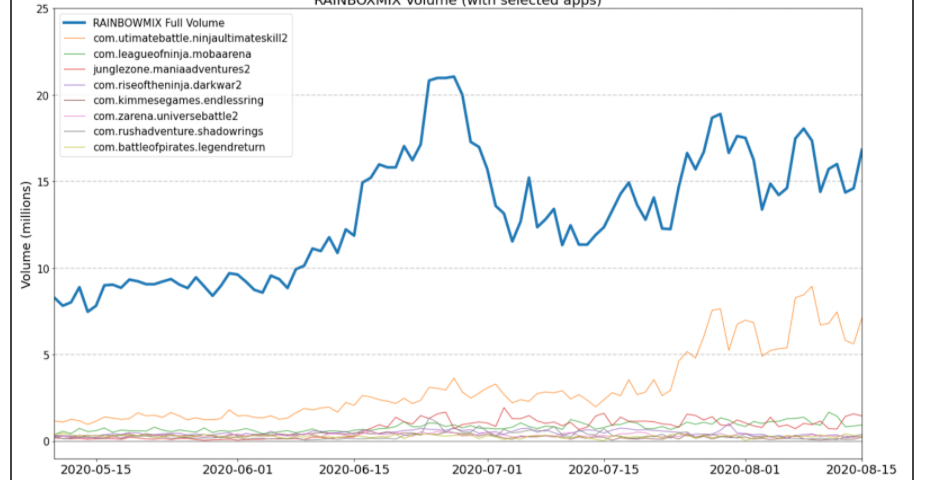 Die Ad-Impressions der RAINBOWMIX-Apps unterscheiden sich nicht von denen seriöser Apps, da die manipulierten Anzeigen auf den Geräten tatsächlicher Nutzer angezeigt werden. Über mehrere Monate hinweg wurde ein beträchtliches Invalid Traffic Volumen generiert und war für einige Zeit für Betrüger ein höchst profitables Geschäft.