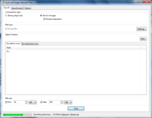 Sie wollen das Dienstprogramm Duplicate Image Remover Free für den Vergleich Fotos installieren und testen. Wir bieten ein gutes Programm an, um Fotos vergleichen. Dies ist das beste Tool, dass die folgenden Bildformate unterstützt: RAW, JPEG, J2K, BMP, GIF, PNG, TIFF, TGA. Das Dienstprogramm kann digitale Fotos nach Name, Datum, Größe vergleichen. Sie können diese Software kostenlos herunterladen und auf Ihren Computer installieren. Das Programm ist für das Betriebssystem Windows.