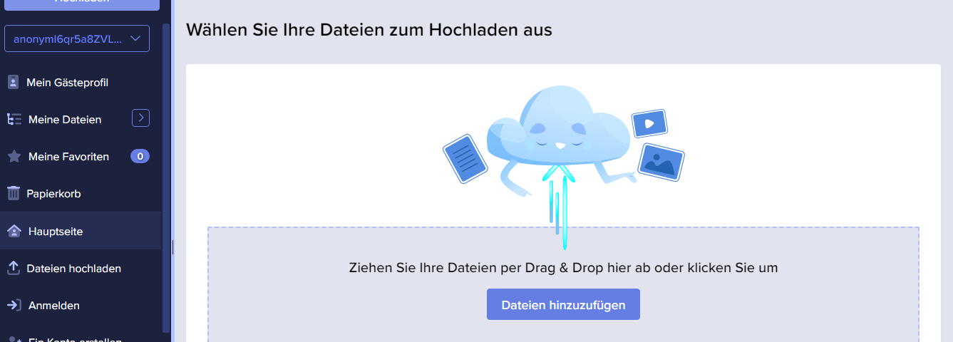 Wenn Sie es also leid sind, sich für Dienste anzumelden und Ihre persönlichen Daten preiszugeben, haben wir eine gute Nachricht für Sie. Upload Now respektiert Ihre Privatsphäre, indem es Ihnen erlaubt, Dateien ohne Registrierung hochzuladen. Greifen Sie einfach auf die Plattform zu und legen Sie sofort los.