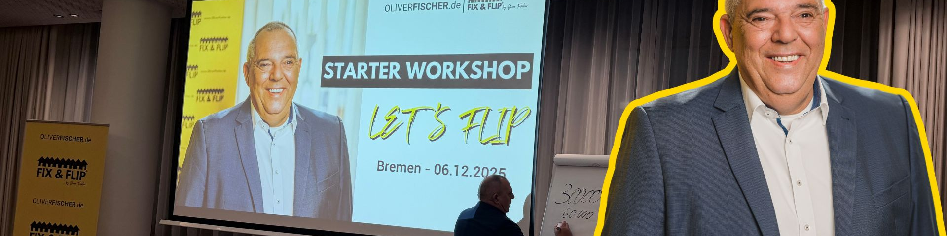 Oliver Fischer, führender Experte im Bereich Fix & Flip mit der Erfahrung aus über 3.000 Transaktionen, veranstaltet diese Workshops & Seminare regelmäßig. Sein Ziel ist es, Investoren optimal auf aktuelle Marktentwicklungen vorzubereiten, ihnen Zugang zu seinem erprobten System zu ermöglichen und ein starkes Netzwerk für den gemeinsamen Erfolg zu schaffen.