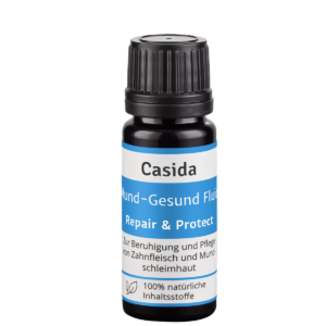 Das Mund-Gesund Fluid – Repair & Protect von Casida lindert Zahnfleischentzündungen, Prothesendruckstellen, chronische Zahnfleischtaschenentzündungen, Bläschen im Mund und Parodontose.