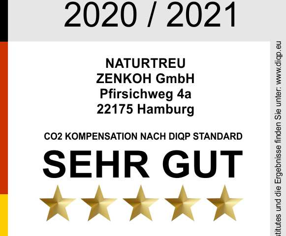 Nun wurde die ZENKOH GmbH, welche unter naturtreu.shop einen Onlineshop für natürliche Nahrungsergänzungsmittel betreibt, erfolgreich als „Klimaneutrales Unternehmen (DIQP)“ mit der Bewertung „sehr gut“ zertifiziert. Die Bewertung „sehr gut“ wurde für eine 100%ige Kompensation der nicht vermeidbaren Emissionen im Aufforstungsprojekt Kinkondo Forrest in Uganda vergeben. Das Projekt entspricht dem anerkannten Gold Standard.