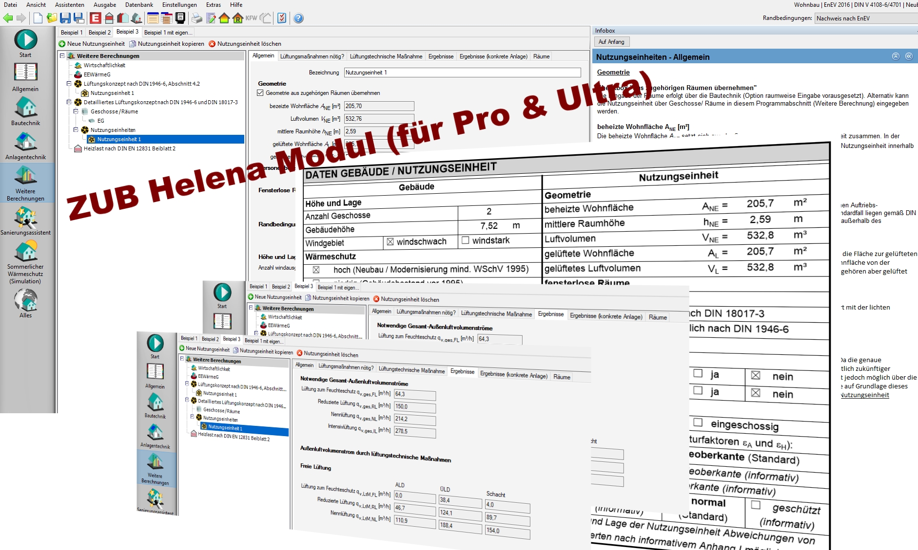 Mit ZUB Lüftungskonzept vervollständigt die Softwareschmiede ZUB Systems jetzt die Softwarefamilie des Gebäudebilanzierungsprogramms ZUB HELENA. Anfang April präsentierte das Unternehmen sein aktualisiertes Programmmodul zur Erstellung eines Lüftungskonzepts nach DIN 1946-6 und DIN 18017-3 (fensterlose Räume). Nach Angaben der Entwickler ist es besonders für Gebäudeenergieberater und Planer von Ein- bis Zweifamilienhäusern sowie wohnähnlichen Gebäuden konzipiert. Diese können damit die von KfW und EnEV geforderten Nachweise für die Lüftung zum Feuchteschutz eines Gebäudes errechnen. Darüber hinaus ermöglicht die Software ein Lüftungskonzept mit allen freien und ventilatorgestützten Lüftungssystemen zu erstellen. Das neue Programmmodul ZUB Lüftungskonzept ist nun in das Hauptprogramm ZUB Helena integriert und kann bereits vorhandene Daten nutzen. Es berechnet raumweise, welche Volumenströme für die Lüftungssysteme notwendig sind, und zeigt zum Beispiel an, wie viele Außenwanddurchlässe einzuplanen sind. Damit lassen sich jetzt besonders einfache, freie Lüftungssysteme planen, wie sie vor allem im privaten Wohnungsbau benötigt werden.