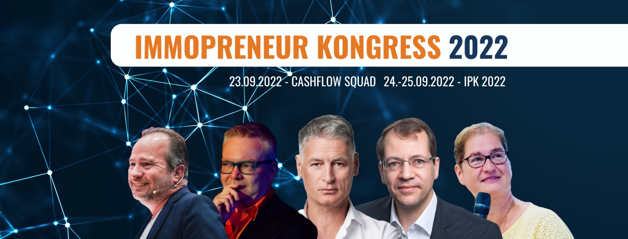 Bad Homburg/Darmstadt, 08.09.2022 – nach einer Pause im Jahr 2021 findet am 24. und 25. September in Darmstadt der Immopreneur-Kongress wieder statt. Gestandene Immobilieninvestoren und diejenige, die es werden wollen, kommen zusammen, um Investitionsmöglichkeiten zu ergründen, Kooperationspartner zu finden und Gleichgesinnte zu treffen. Im Vordergrund stehen in diesem Jahr die sich rasant verändernden ökonomischen und wirtschaftlichen Rahmenbedingungen. Das gemeinsame Ziel: erfolgreiches Immobilieninvestment durch Netzwerk, Know-How und Strategie – trotz und mit der sich verändernden Wirtschaftslage.